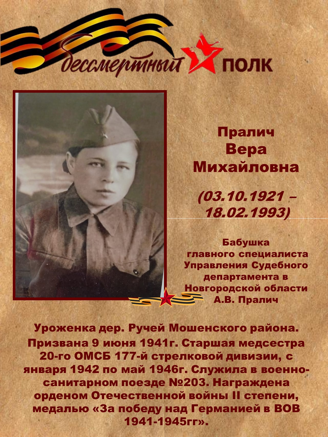 В честь 80-й годовщины Победы в Великой Отечественной войне Управление Судебного департамента в Новгородской области продолжает цикл публикаций "Бессмертный полк"