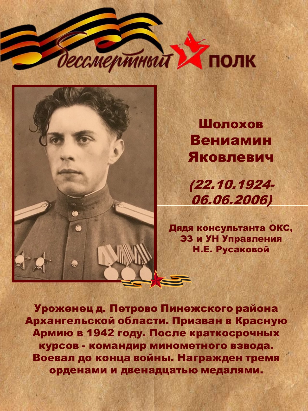 В честь 80-й годовщины Победы в Великой Отечественной войне Управление Судебного департамента в Новгородской области продолжает цикл публикаций "Бессмертный полк" ![]() |